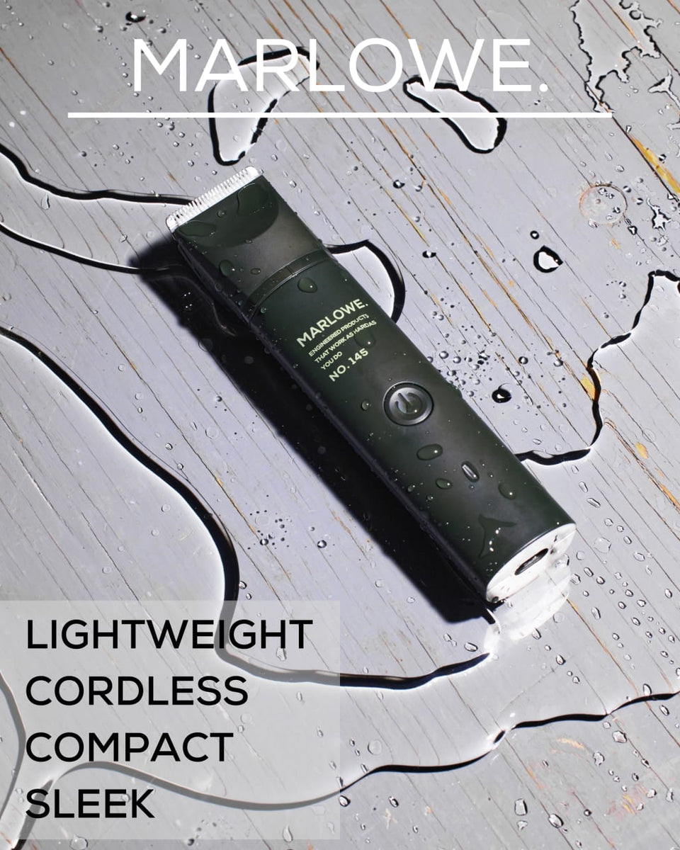 The No. 145 Trimmer features a waterproof housing for wet and dry use, a lightweight sleek construction for easy handling, and a compact palm-friendly design for precise contours. Groom your body, beard, chest, and groin with unrestricted cordless operation.